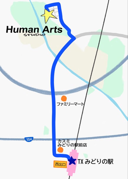 45 minutes from Akihabara Station on the TX line to Midori Station. 7 minutes by car from Midori Station to the studio.