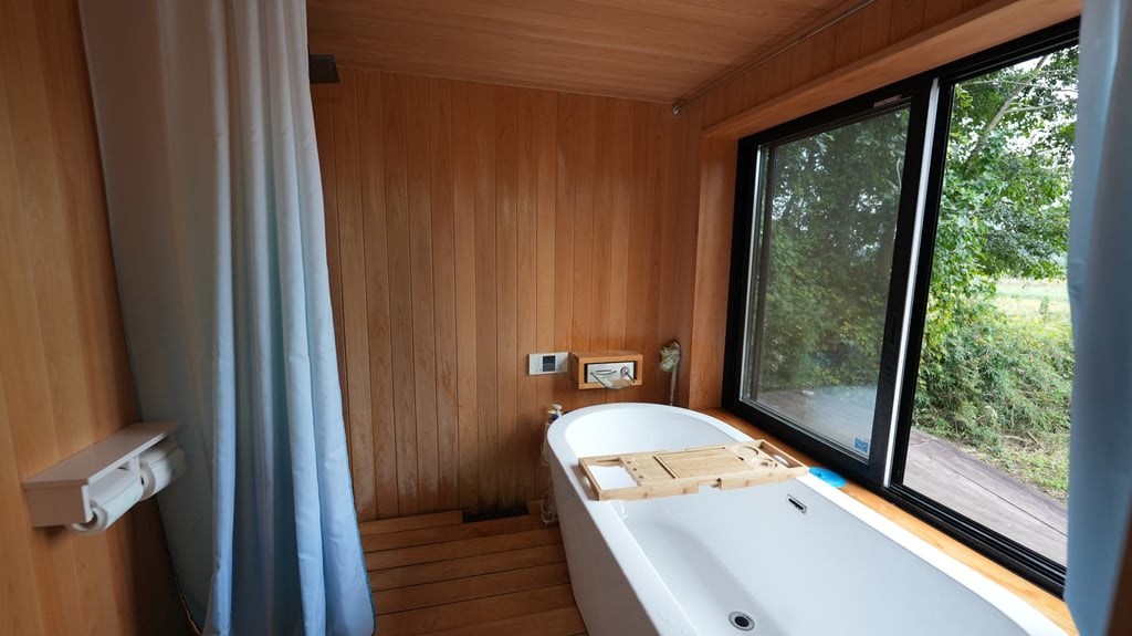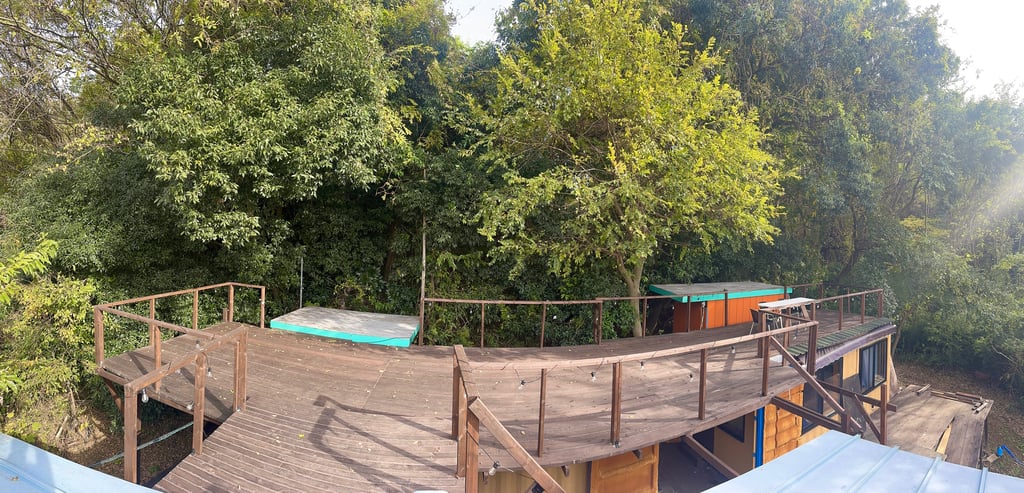 The Sunset Space is a container house with a dining kitchen and a great smelling hinoki cypress bathroom and a large, two story deck. This space can be rented alone or with the other spaces. It's a great place for parties, relaxing, or for food services for events and video shoots.