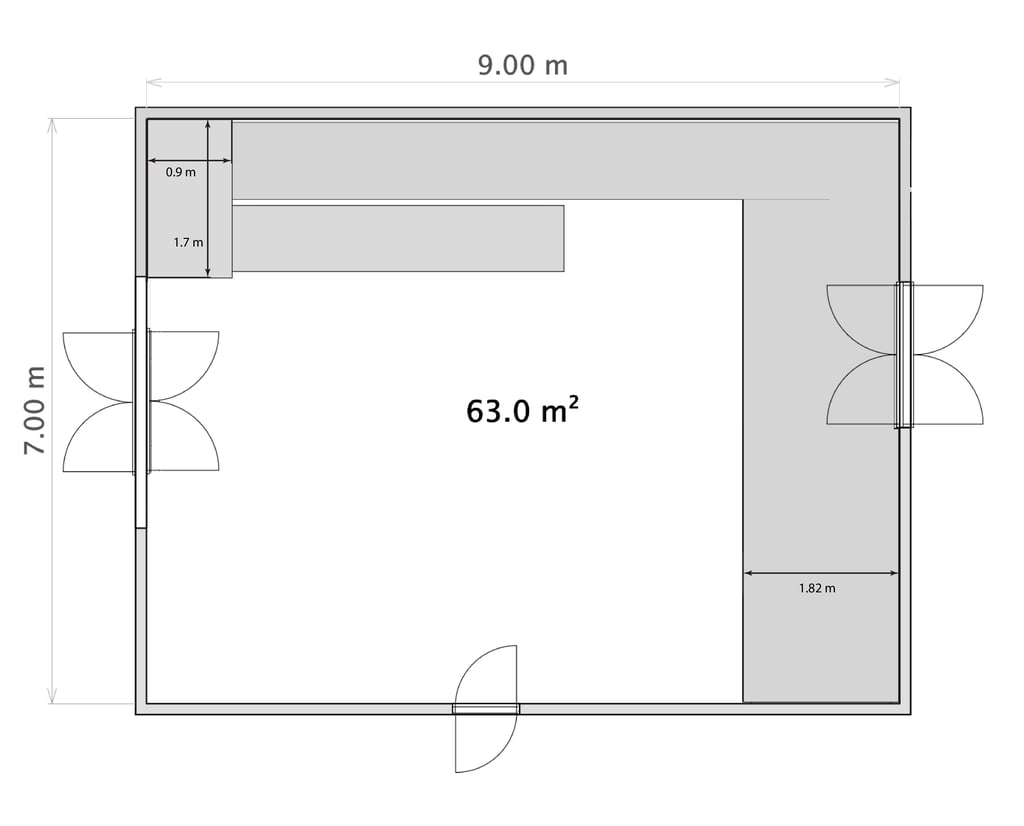 We have transformed a warehouse into a spacious, sound proof, climate controlled multi-use space. The 9m (D) x 7m (W) x 4.2m (H) (63m²) can be used in any way you see fit. The New Zealand pine flooring is great for ping pong, Yoga, exercise classes or for recordings with a bit more reflections. We have carpets to tame some of the floor reflections and to make it a softer feeling space.