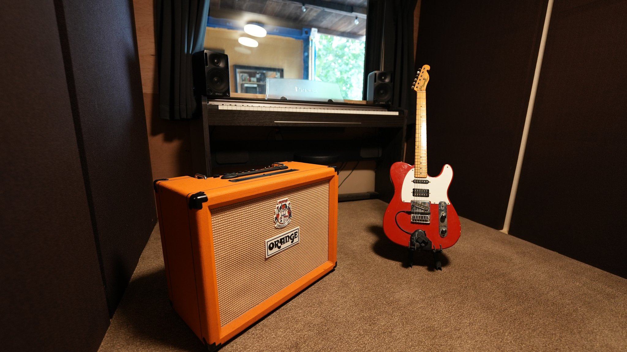 The Main Hall is a spacious 7 meters by 9 meters and 4.2 meters high. The RT60 time is around 0.6 seconds which means that it is a "live" room but not so "live" that you can hear a distinct echo. This makes recordings sound spacious and lively. Recordings sound sweet without any eq or effects. Great for vocals but also for acoustic instruments and drums. The space is large enough to record an entire band or ensemble live and you can even record vocal or quiet instruments in Studio J with the rest of the band playing live in the Main Hall. The sofa is great for kicking back between takes and while listening to playback. All of the space (air) in the room makes the playback from the speakers sound great without distractions from early reflections.